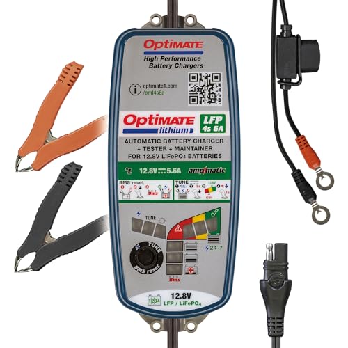 Tecmate OptiMate Lithium 4s 6A, TM391, 10-step 12.8V 6A Lithium Expert Battery Saving Charger & Maintainer, Blue/Green