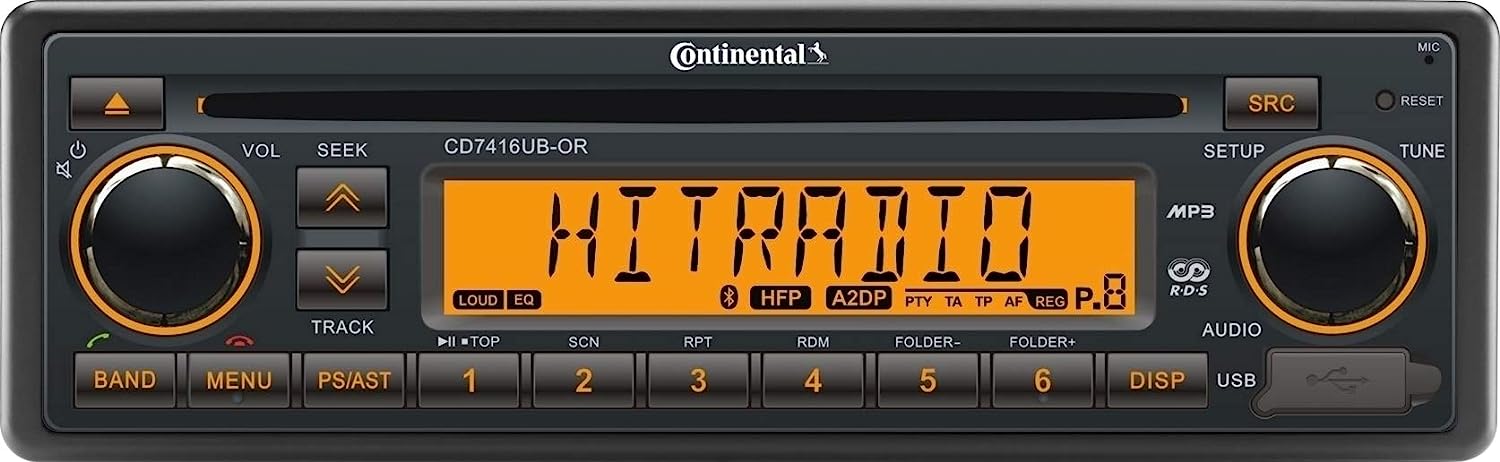 VDO Continental CD7416UB-OR European Style 12v Radio Orange Display Bluetooth & CD Player